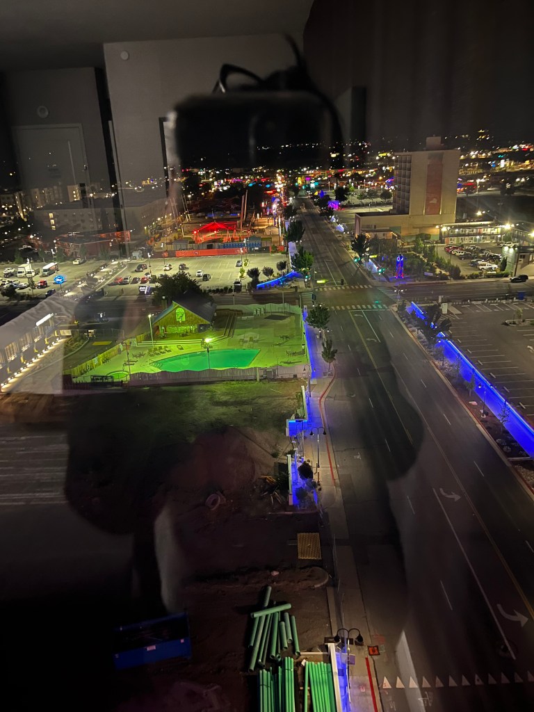 I said he could stay so he wouldn’t have to drive back to Sacramento and be back again at 6 am. “It’s a huge room,” I said, “I can call the front desk for a cot. I have extra brand-new toothbrushes and clean t-shirts with raptors on them.”