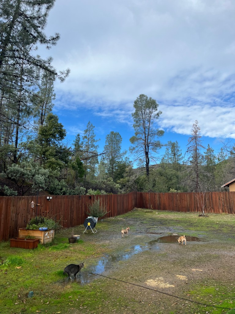 You’re in the kitchen when the dogs start barking at the front door. You know no one is here, or the cameras in the front of the property, the driveway or the front door would have gone off. But you trust your dogs so you go look out the window from the guest bedroom. You see nothing, but you get the feeling something just happened. Then you spot it in a far away branch of that interior oak PG&E is going to fell because it’s too close to the power line. A hawk.